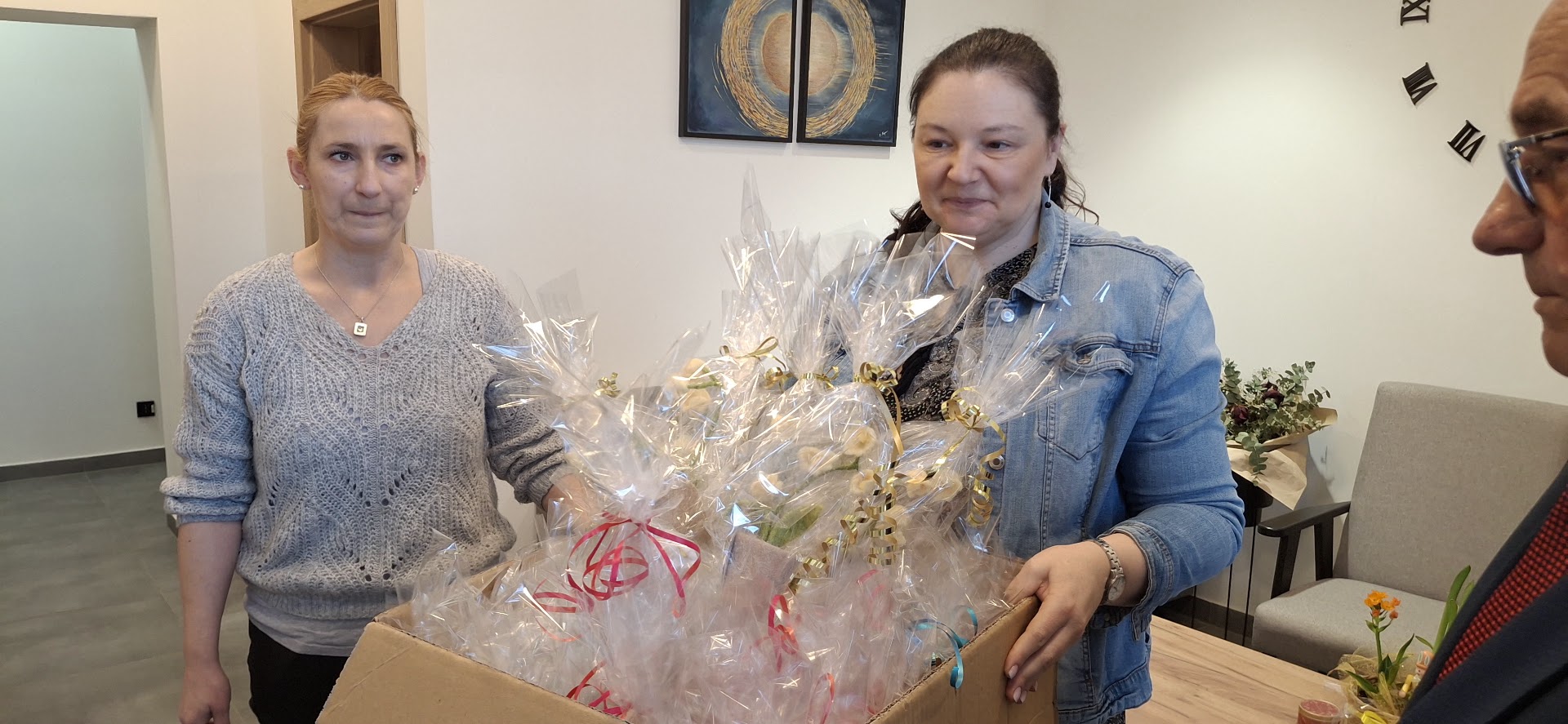 Nasze Panie zostały obdarowane miłymi upominkami, a Pan Wójt wręczył słodki poczestunek składając wszystkim Paniom serdeczne życzenia.